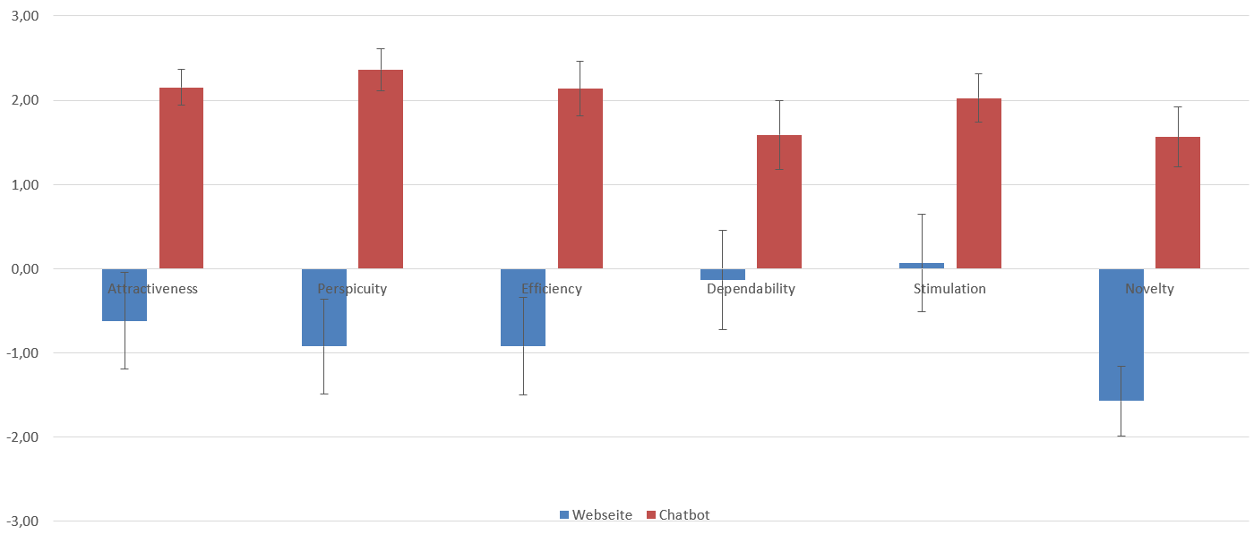 Finally, a comparative evaluation with 20 participants aged from 21 to 55 years was carried out with the website of the donation service Heama. To get a broad understanding of the differences in the UX, the usability and the time on task using these two systems, I conducted a usability test interviewing the users and letting them solve tasks with both chatbot and website while thinking aloud. Also the standardised questionnaires UEQ and SUS were used.