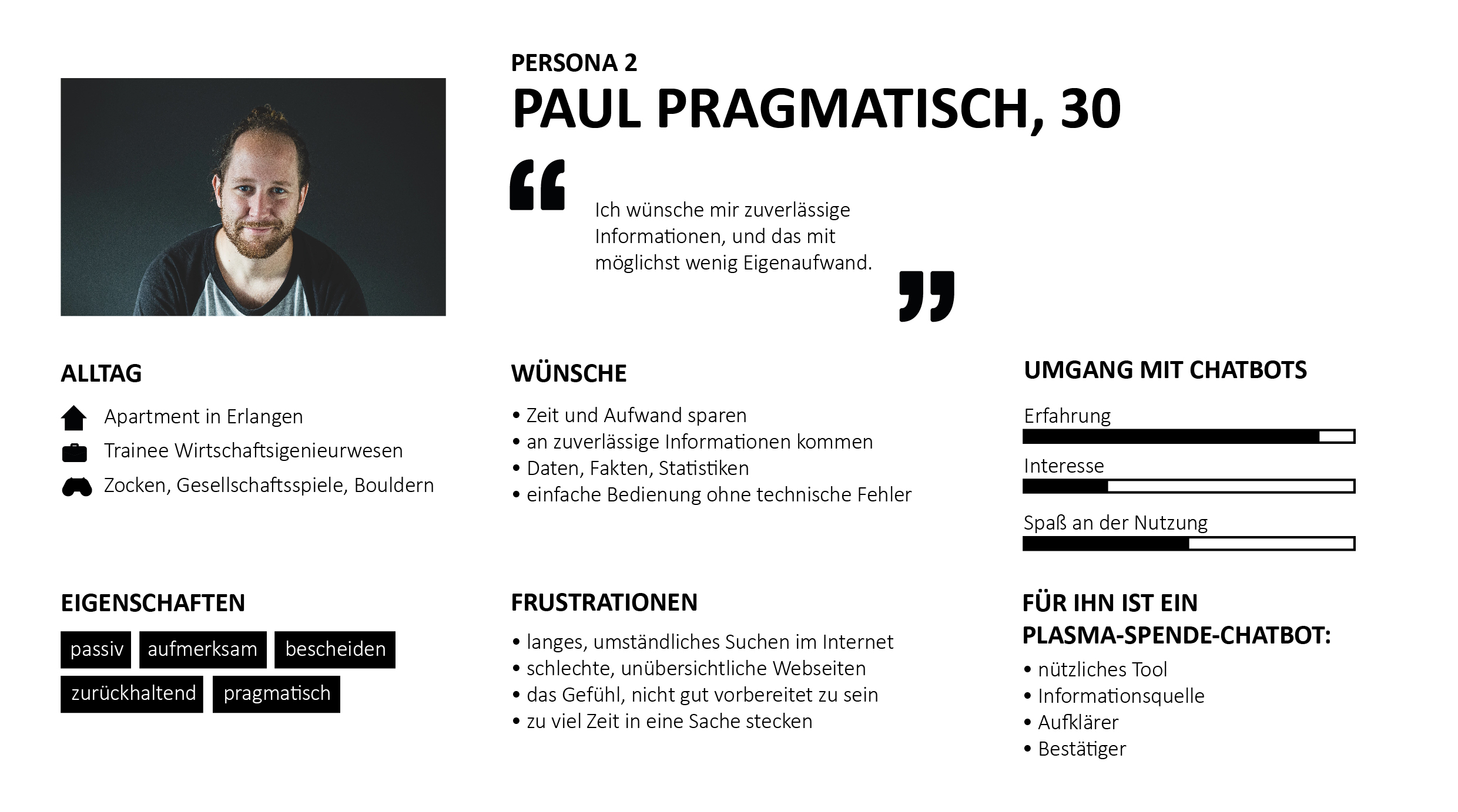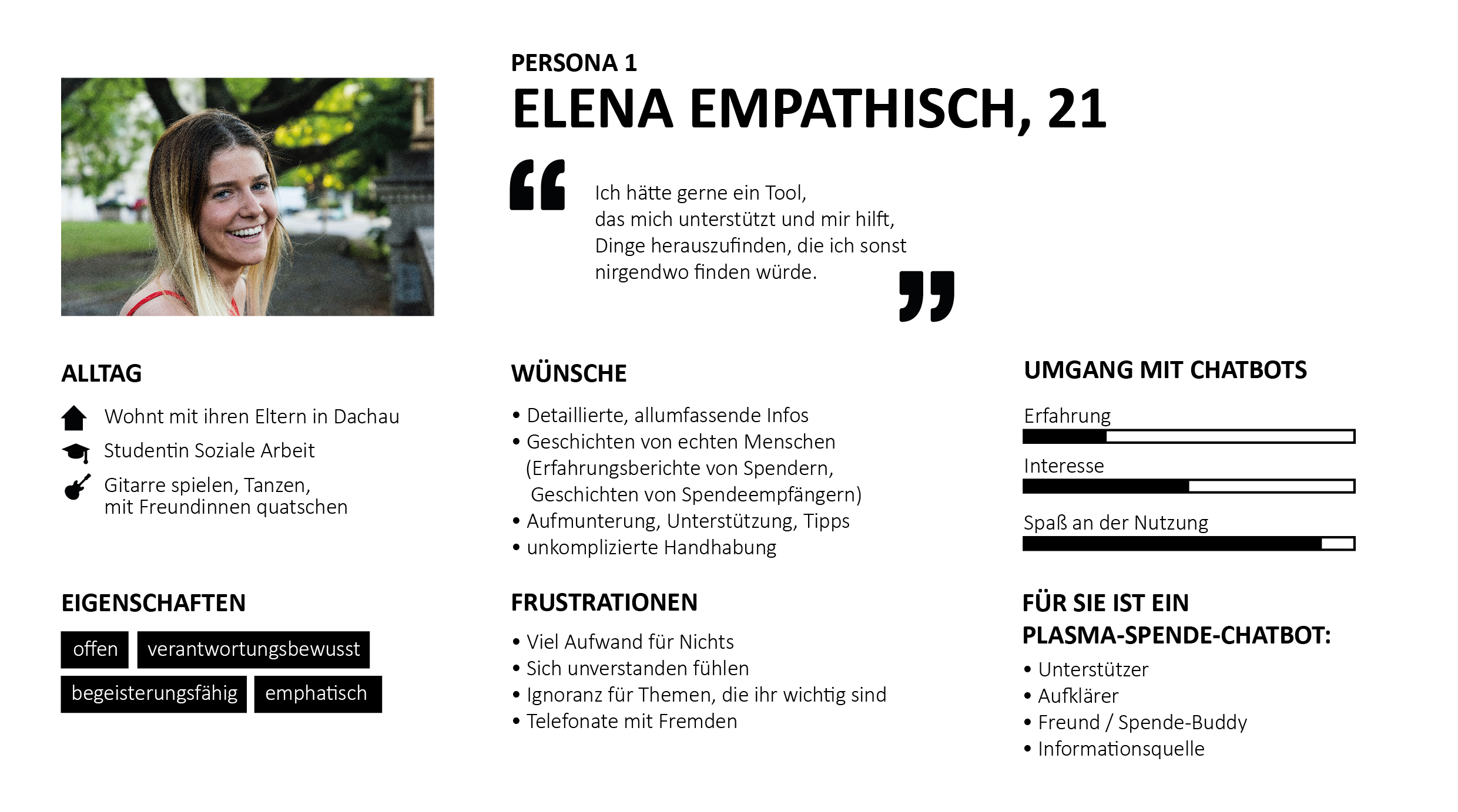 Afterwards I conducted interviews with six potential users of different gender and age who were either active plasma donators or interested in becoming a donator.